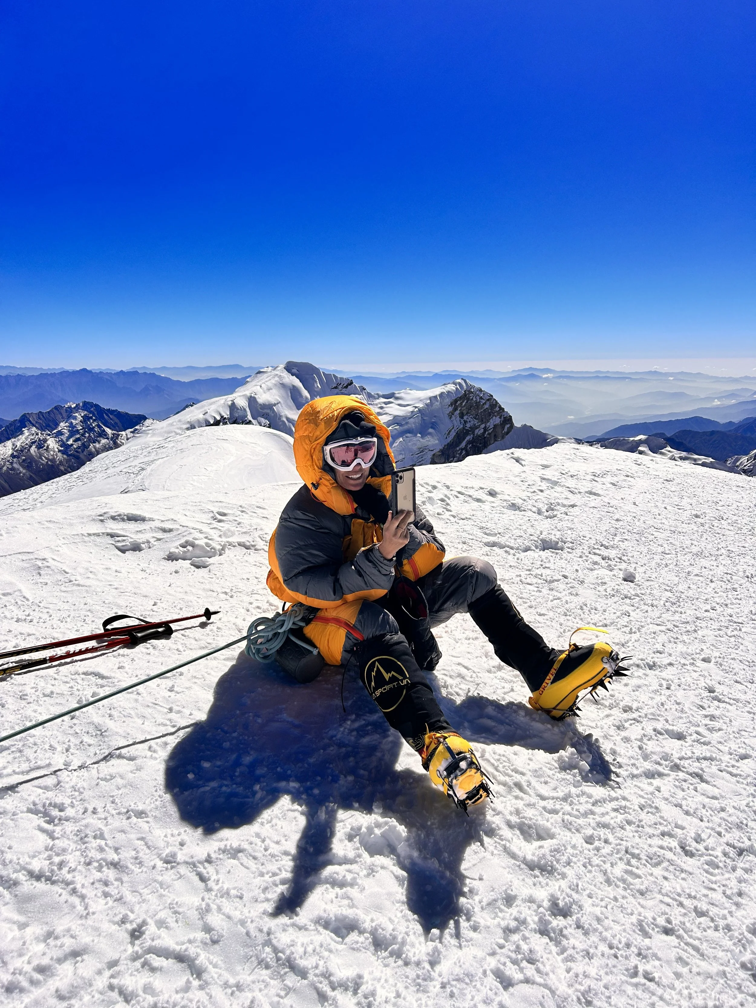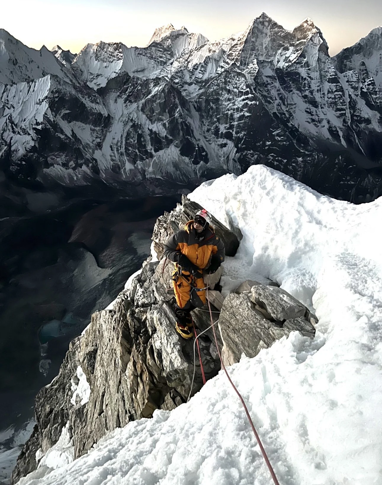 At 6,476m, Mera Peak was my first real taste of high-altitude mountaineering. It was the first time I climbed roped up, wearing crampons, starting out in the dark with a headlamp, and moving through the thin air above 6,000m. I reached the summit while battling COVID, which made every step heavier and more uncertain. But it was also the climb where I fell in love with mountaineering — and knew that no matter how uncomfortable it could be, I’d keep coming back to the Himalayas to climb again and again.